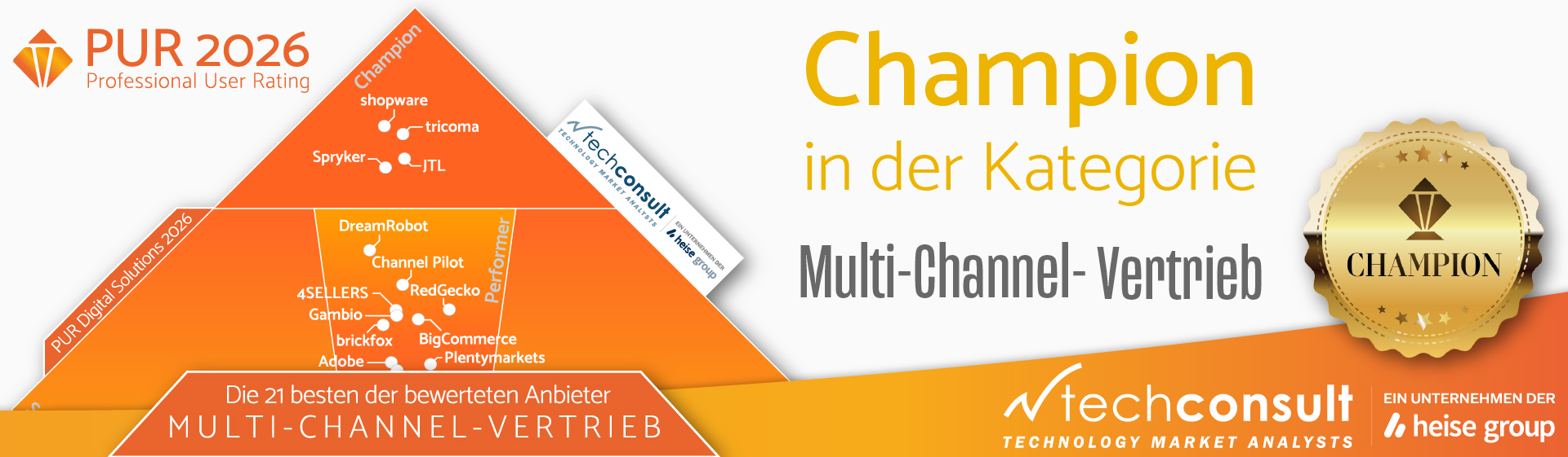 Der PUR-Diamant 2026 von techconsult zeigt es: tricoma gehört zur absoluten Spitzengruppe unter allen bewerteten Anbietern im Bereich Multi-Channel-Vertrieb ? mit Bestnoten in Lösung und Unternehmen. Offizielle Top-Position im techconsult-Diamanten neben Shopware, JTL & Spryker.